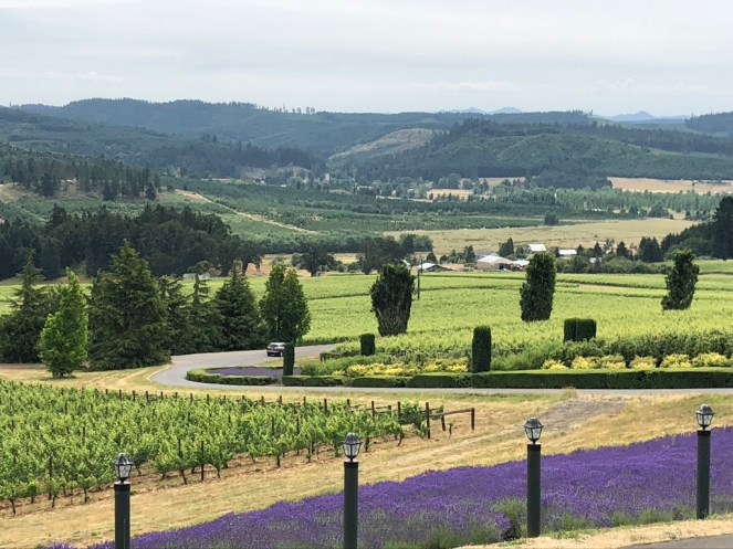 The next morning as we awoke from our peaceful slumber, we enjoyed a wonderful breakfast at the hotel. Afterwards, we began our trip by driving south to Eugene to visit the King Estate winery where we had reservations for lunch. The drive was amazing and beautiful. Once we exited the Interstate and hit the countryside, the scenery was peaceful with plush rolling hills. As we approached our destination you could see the vineyards amid a sea of lavender with the winery atop a hill like an estate— its name is fitting.