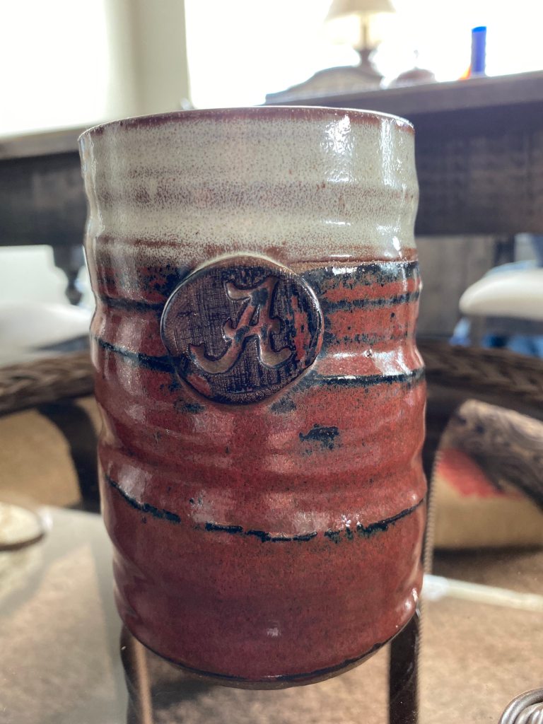 I cherish the coffee mug that I purchased with the script “A” the University of Alabama logo. It has become one of my favorite mugs. I wish I had more of the pottery, but hopefully will be able to purchase some dishes in the future.