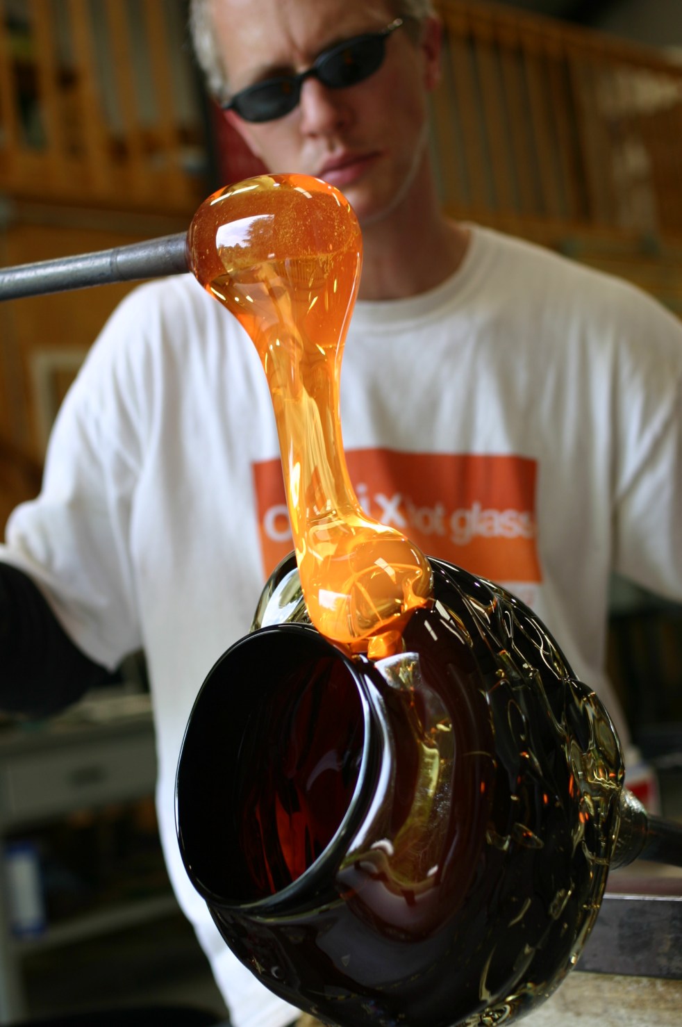 (Photo Credit: Cover Photo of Cal Breed creating glass in studio courtesy of Orbix)