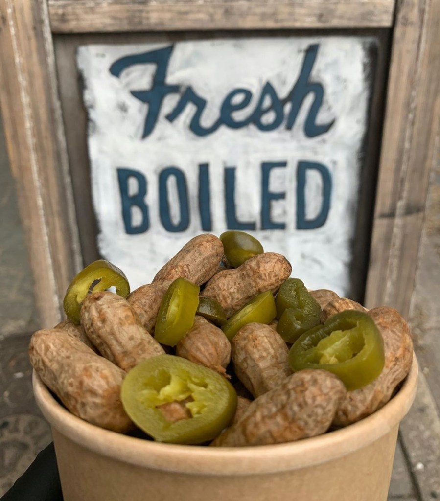 You can enjoy fresh hot-roasted peanuts or boiled peanuts — a southern passion. They are made fresh every day and you can’t just crack open one —since they are so yummy. That should be their signature line… You can’t crack open just one. Try it, we dare you.