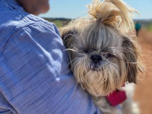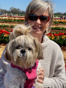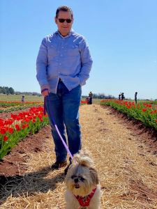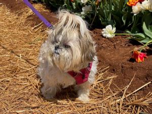 Once you have picked all the flowers you want the staff will wrap them in brown paper for you to take home. You can pick all you want, but the $2.50 per flower adds up quickly, but I have to say, it’s well worth it. Not only do you get beautiful, fresh flowers but we had fun with the family strolling the rows and taking in the sights of the farm. We even took our fur baby Scarlet and boy did she enjoy roaming in the roads with her dad while mom picked flowers. She was so tired she had to take a nap.
