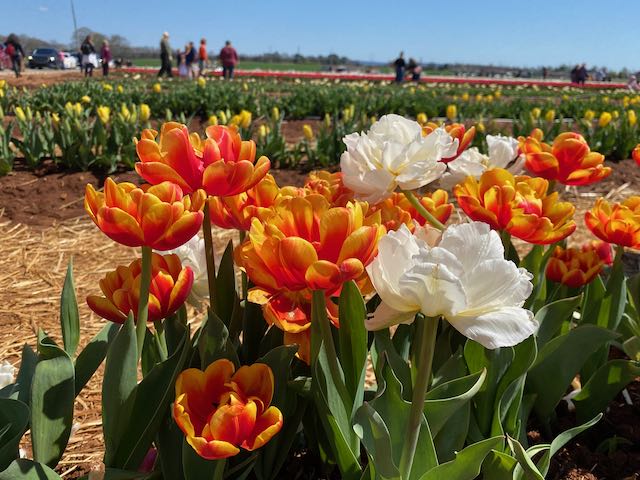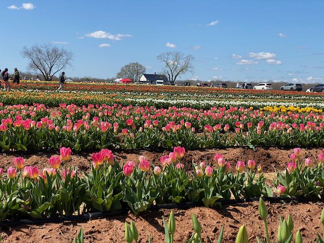 I never thought I would be picking Tulips on a farm in Alabama. I’ve seen the Tulip fields in Washington State, but in Alabama, it’s something new. We visited the Hubert Family Farms in New Market, just north of Huntsville on grand opening day in March. Maybe we shouldn’t have visited during the grand opening because the field was jam-packed with visitors just waiting to get their hands on more than 200,000 beautiful flowers from pinks, reds and yellows to purple and white blooms.