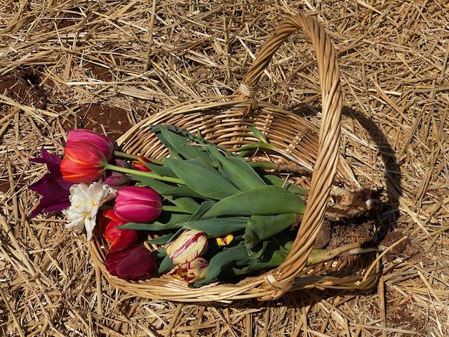I had a hard time deciding which colors I wanted so I picked a sample of yellow, red, pink and purple. I think the purple tulips were my favorite. Our collection lasted about two weeks at home, but do take the advice on the website to bring a bucket with water. The tulips tend to wilt without water not long after picking. I tried to pick so I would get the entire root bulb, but some were so stubborn I could only get the stem. Don’t worry, it’s okay to get the bulbs. Once my blooms were spent, I cut the stems from the bulbs and planted them in my garden. We will just have to wait to see if they sprout new flowers.