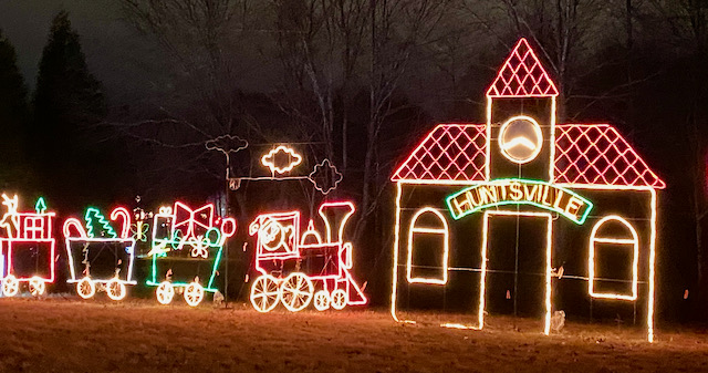 This display is so spectacular that USA Today named the Galaxy of Lights one of the Top Ten Best Botanical Garden Holiday Lights in 2020. I rate it a “must-see” if you live within a two-hour drive from Huntsville, Alabama. And it’s definitely worth a stop if you are traveling in the area for the holidays.