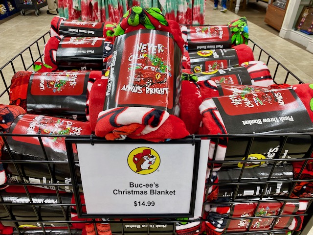 Again, I found myself wanting to buy almost everything I saw. Who doesn’t want a Buc-ee’s glow-in-the-dark New Year t-shirt? What about the Buc-ee’s Christmas pajamas or blanket? I was trying to think of who on my Christmas list would appreciate these awesome gifts. I picked up a bag of Beaver Nuggets that everyone was talking about and posting pictures of on social media pages and decided I may not like them so I put the bag back.