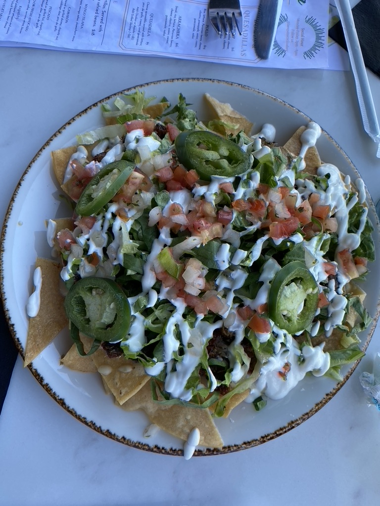 We started our meal with the nachos, but this appetizer could count as a meal for one person. The nachos come with a choice of meat and I ordered ours with braised pork. They were different than your typical tail-gate nachos, but they were delicious. For dinner, I had the Chicken Enchiladas Verdes while my husband dined on a chicken Quesadilla. The portions are plentiful and you might need a to-go box as I did, but I think it was because I ate a ton of nachos.
