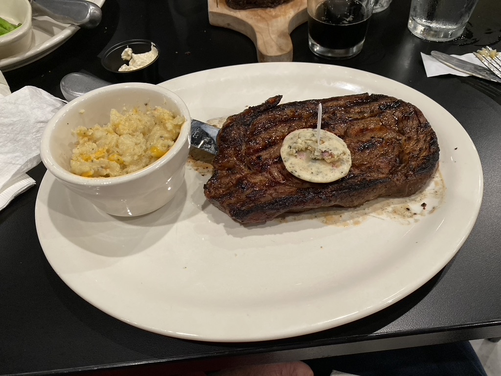 The atmosphere is very casual and a bit loud inside due to the wide openness of the space (think industrial loft feel); however, they do have outdoor seating, but it was too cold when we visited. We started our meal with the crab claws which were yummy. Although the steaks were delicious, the sides were small portions. I ordered the asparagus, which is a signature side with an upcharge, and I have to say that they were the skinniest asparagus that I have ever eaten. Maybe it was a bad batch, but I didn’t see paying extra for this sad-looking side. My husband had the twice-baked potato casserole which was okay— nothing to write home about. I will go back because the steaks are truly some of the best that I’ve tasted.