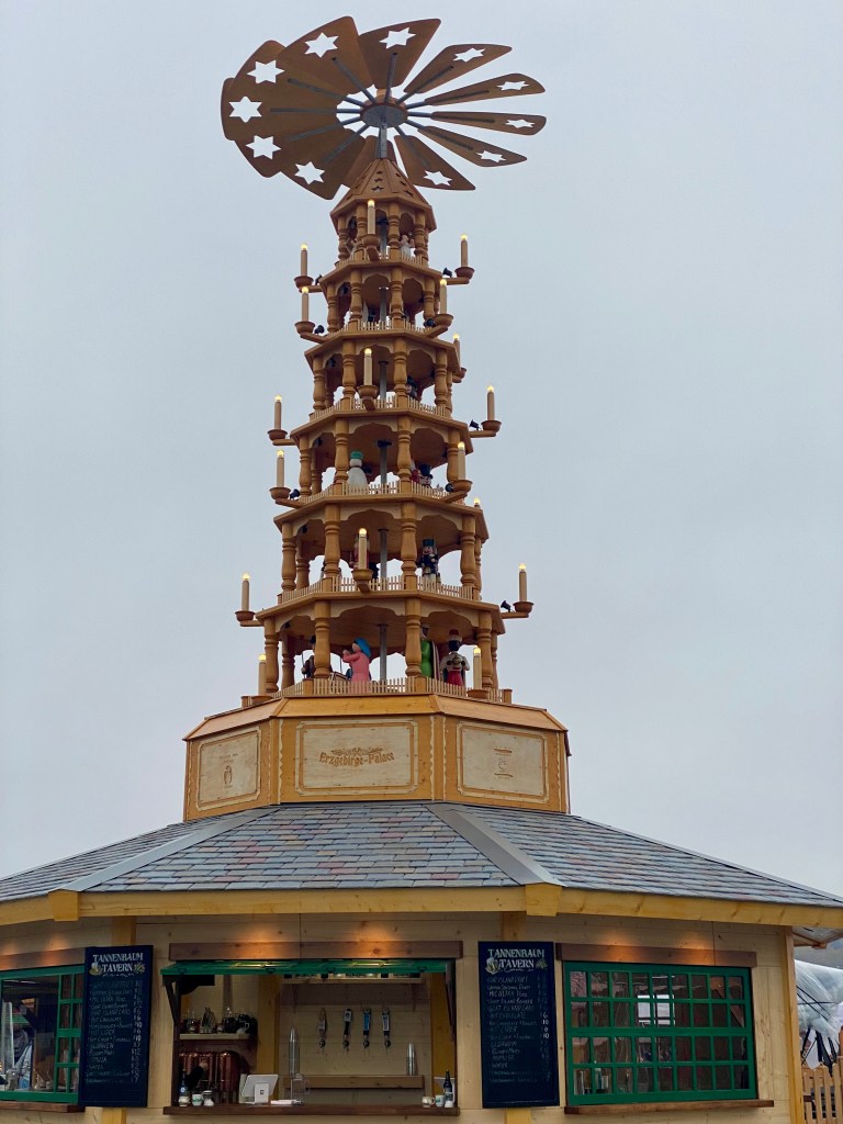 You can’t miss the entrance. It’s adorned with gigantic nutcrackers and a towering German Christmas Pyramid that steal the show. It’s like stepping into a fairytale.