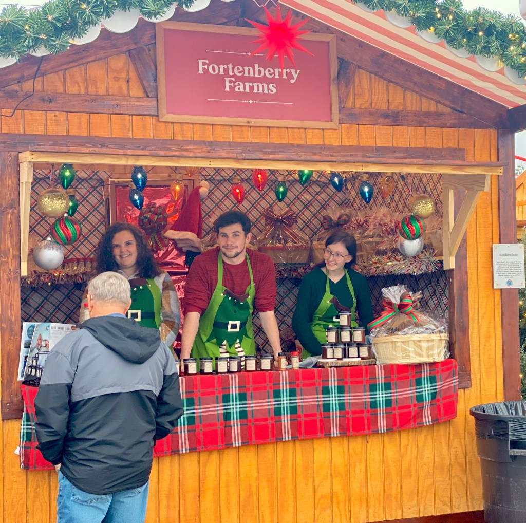 As you wander through the market, quaint wooden huts are occupied by a myriad of vendors nestled in Depot Park. And they offer handcrafted items straight from Germany. I perused some 40 vendors along the perimeter with treasure troves of keepsakes from Cuckoo clocks and handmade ornaments to holiday fashion, candy, and toys. There’s even a booth dedicated to spoiling your furry friends with treats and toys. Talk about pawsome!